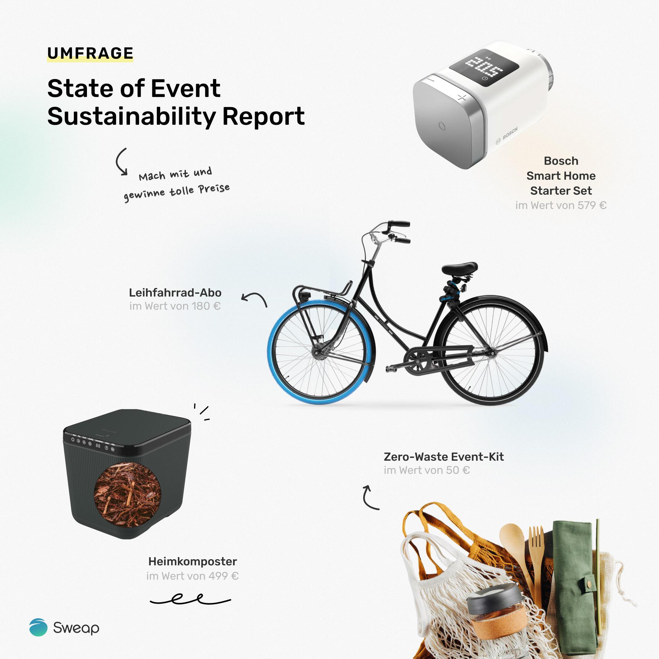 Mach mit bei unserer Studie, teile dein Wissen und gewinne tolle Preise. Gemeinsam für nachhaltigere Events!
